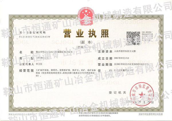 鞍山市恒通礦山冶金機械制造有限公司成立于2000年,由一個職工不到十人,產值不足千萬的小公司,發(fā)展到現在職工兩百多人,產值近億元。涉足的產業(yè)有礦山設備的制造,以及鐵礦、選礦廠等。多年來,我們經歷了很多的風風雨雨,和太多的不易。感謝陪我們一路走來的朋友們,沒有你們的支持和幫助就沒有我們的今天,我們的工作還有很多的瑕疵和不足,在以后的工作中我們會加倍的努力。愿好人一生平安!
